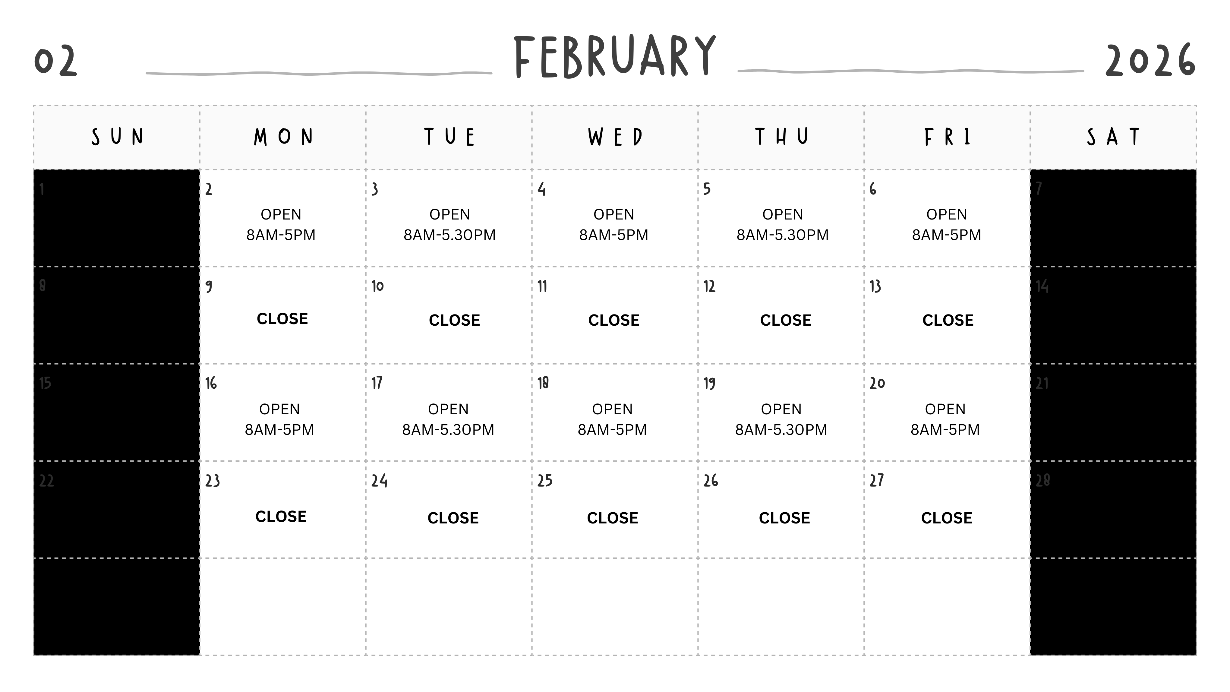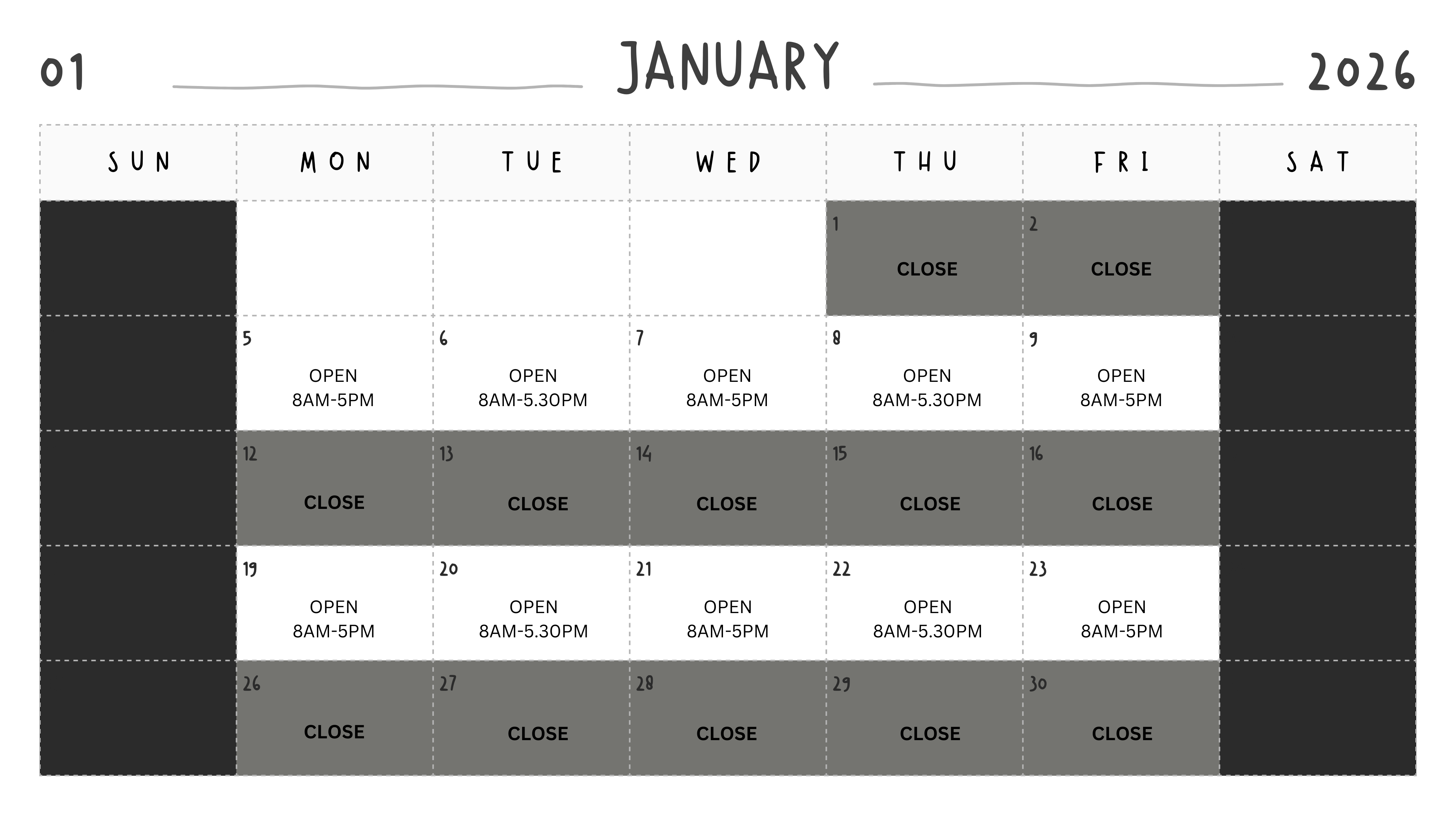 Tue, Thu: 8.00 am - 5.30 pm